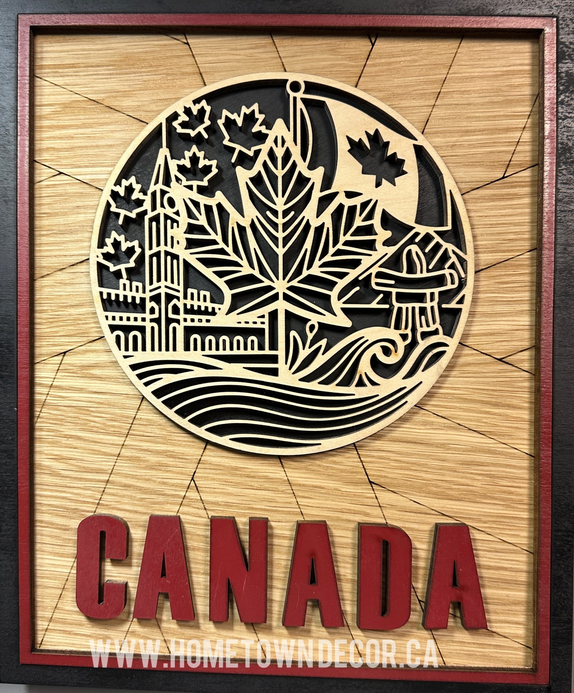Canada sign to celebrate Canadian pride. This is several layers and embodies iconic Canadian monuments.