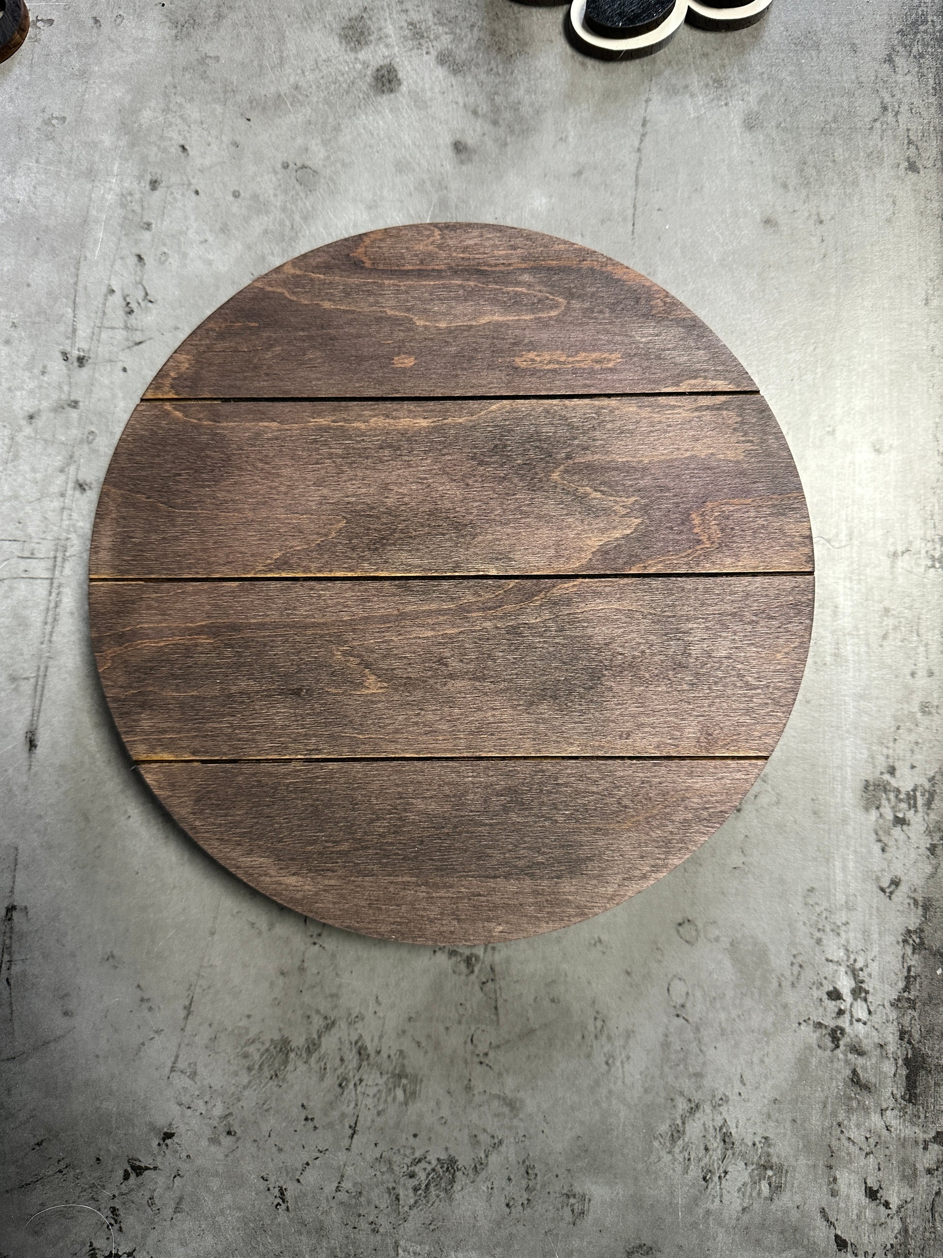 Personalized round dog leash holder. This dog leash holder is made from 1/4 and 1/2 inch Maple Veneer, and the approximate size is 8 inches / 20CMS Round. It has one 3D paw print, one double hanging hook and the pet's name in 3D letters.