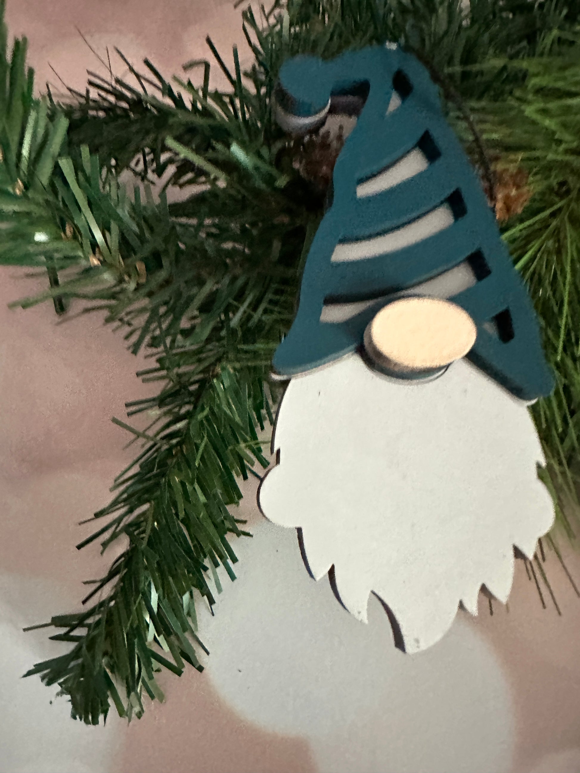 Gnomes, gnomes and more gnomes. We have this cute ornament or home decoration in many different colors and styles. This multiple layered wooden decoration is made from painted Maple veneer and is approximately 4 inches long and 2 inches wide.