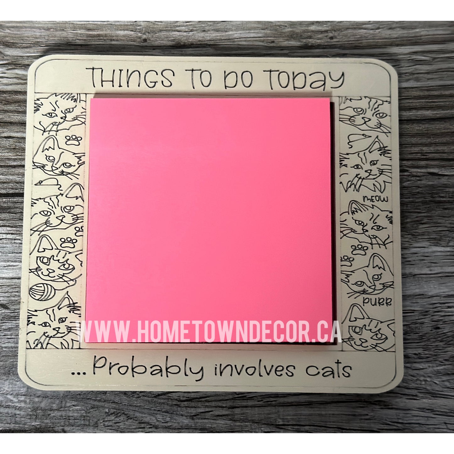 Pet Themed Note pads. Who doesn't need to keep sticky notes to keep track of your lists? Why not do it with these fun pet themed note holders. Hold 1 standard sticky note pad. One is included with the holder. Dog or cat themed to chose from. Made with Maple veneer. Size is 4.75 inches wide by 4.25 inches high.
